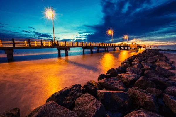 Our team's favorite spot for swimming pups! Crystal-clear Gulf waters and a dedicated off-leash dog area. Perfect for dogs who love to swim and socialize.